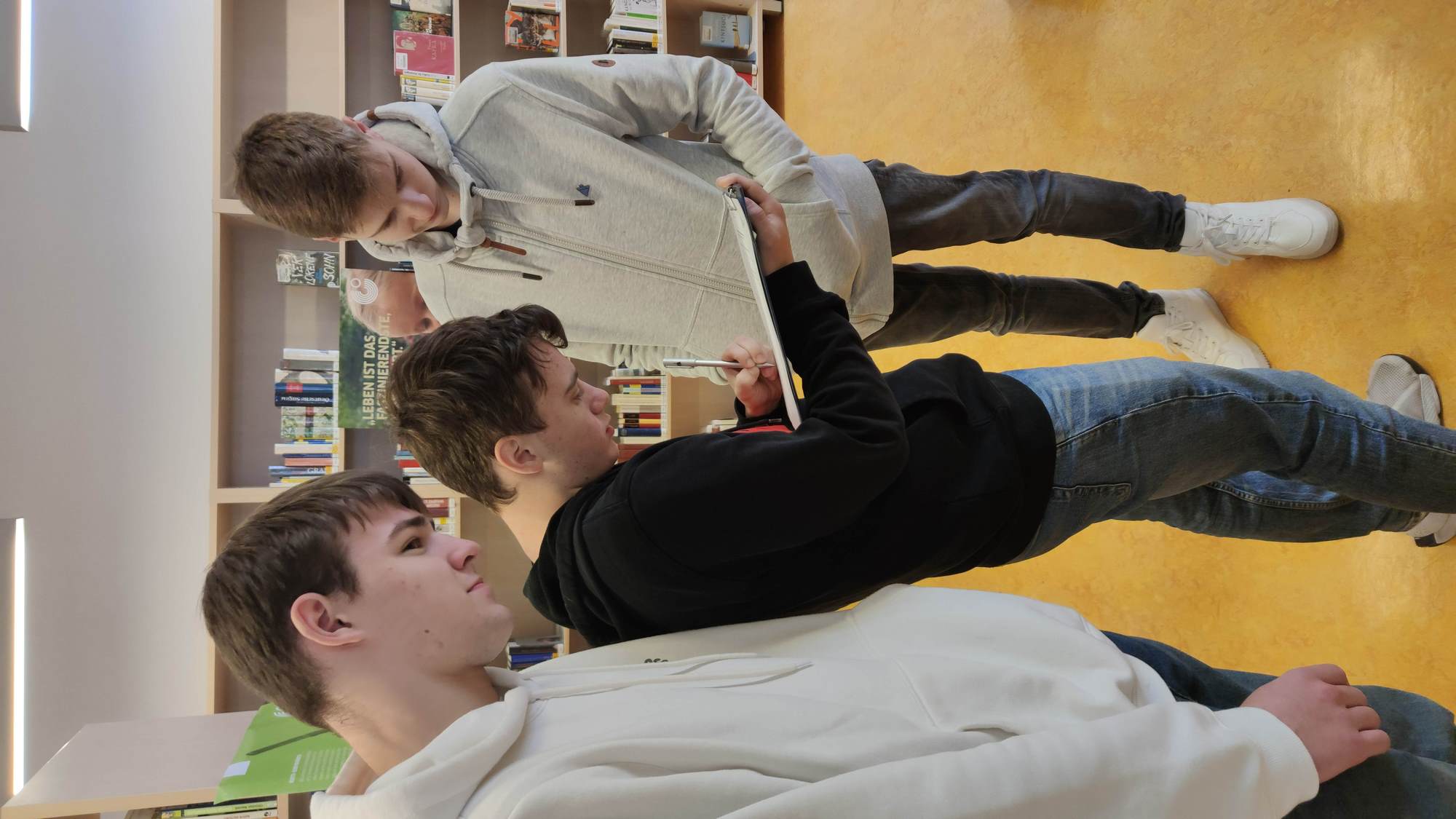 Vybrali jsme program zaměřený na vynálezy a vynálezce – Erfinderland Deutschland. Žáci vytvořili týmy, obdrželi pracovní listy v německém jazyce na úrovni B 1. Jednotlivé týmy úzce spolupracovaly, získané poznatky žáci zaznamenávali do připravených pracovních listů. Následovalo vyhodnocení splněných úkolů. Na závěr nás paní M. Dvorská ještě obeznámila s fondem knihovny a způsobem výpůjček, žáky informovala o digitální nabídce knihovny GI „onleihe“.