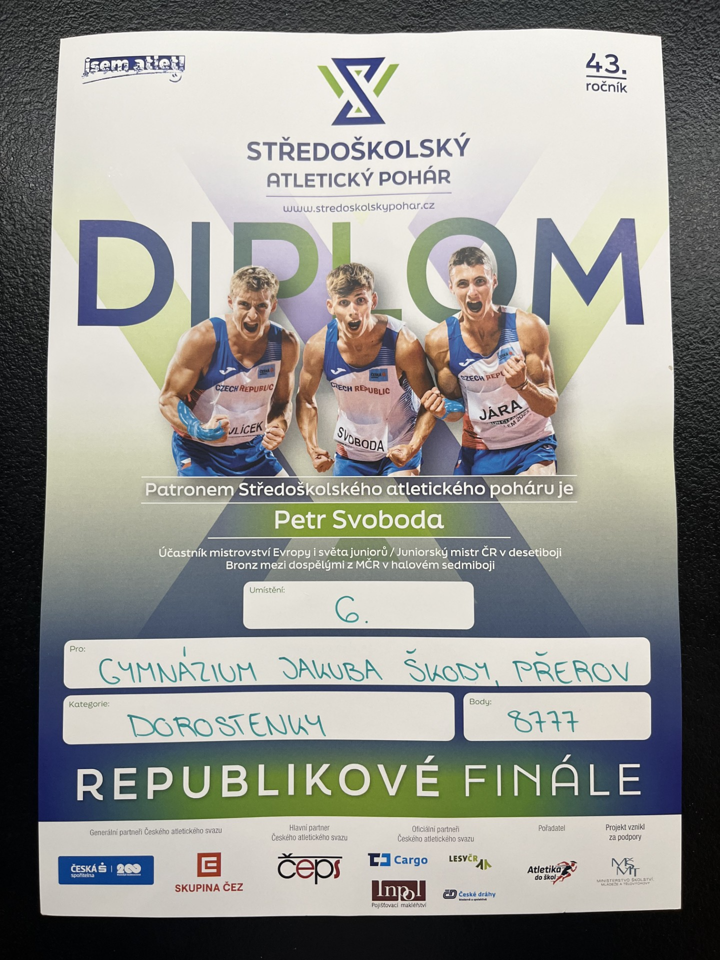 Tým 12 děvčat vyššího gymnázia se 9.října zúčastnil republikového finále ve Středoškolském atletickém poháru, které se tradičně konalo v Břeclavi.