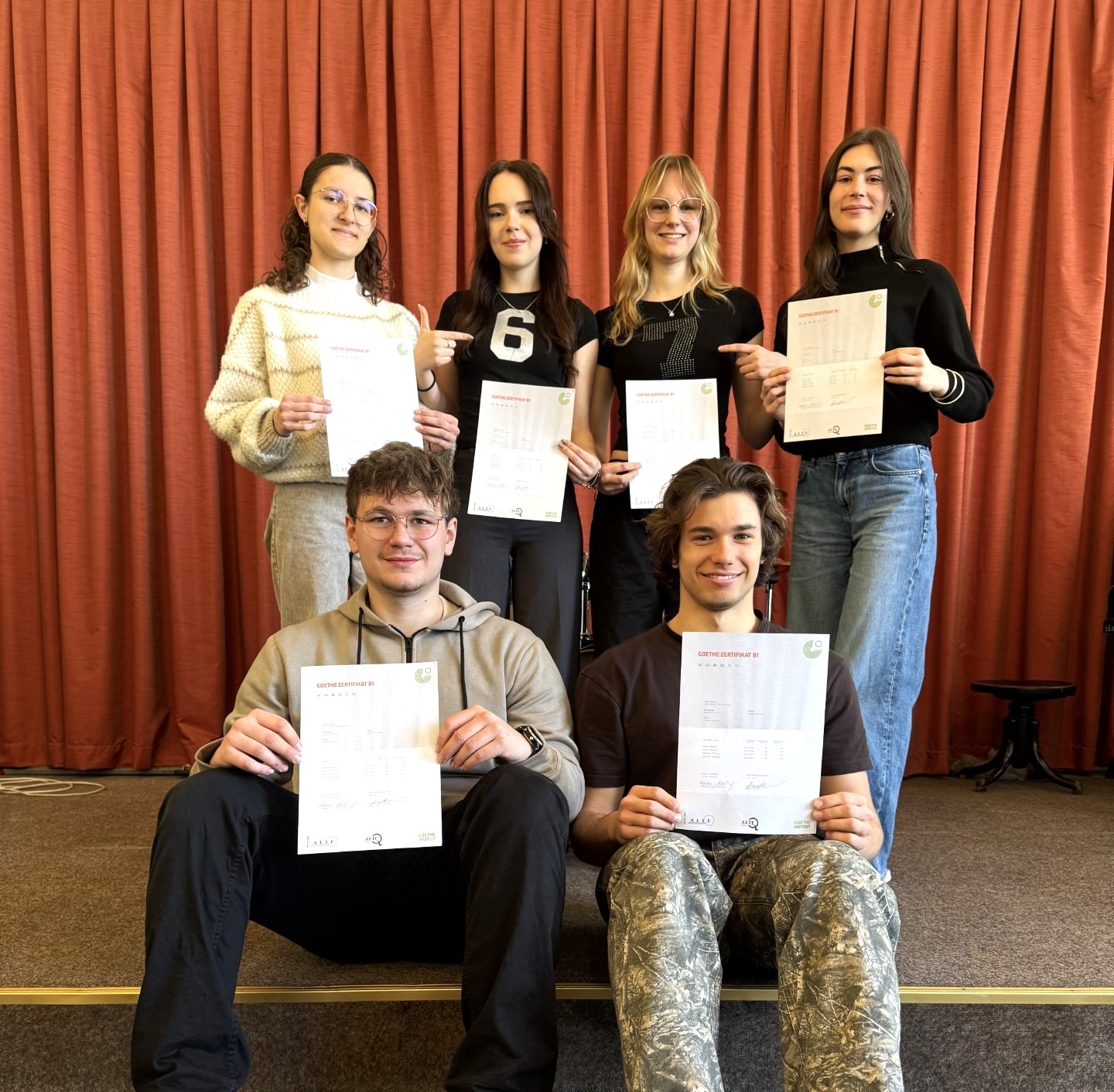 Úspěšnými držiteli Goethe-Zertifikat Deutsch B 1 se stali: Jakub Csoma (oktáva a), Magdalena Číhalová (oktáva b), Tomáš Holčák (oktáva b), Markéta Švarcová (oktáva a), Marie Tesařová (oktáva a) a Adéla Vavříková (oktáva b).