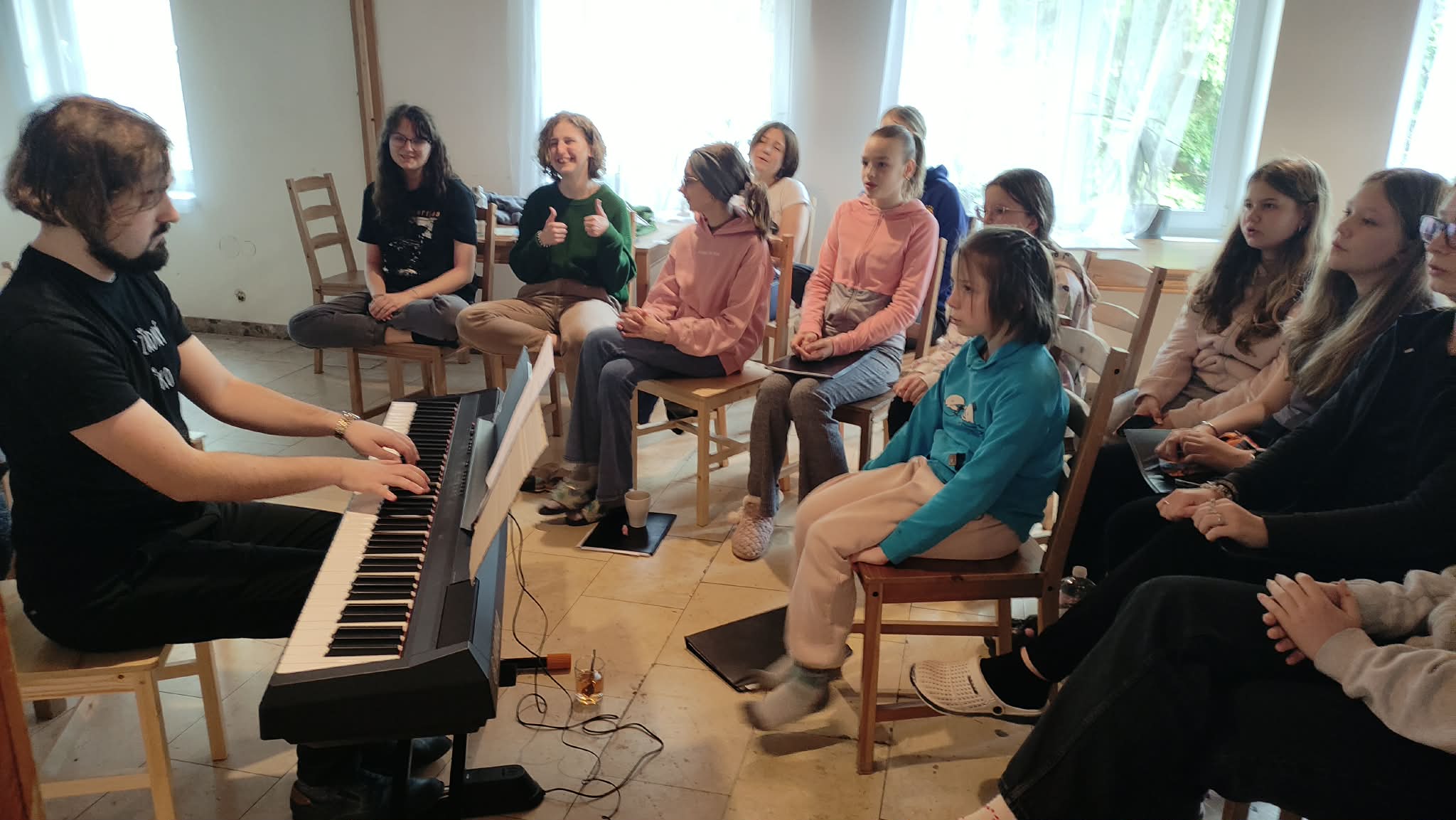 Nacvičoval jarní repertoár, který zazní na začátku června v mezipatře našeho gymnázia.