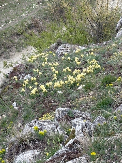Každoroční akce je pořádána hlavně jako botanická exkurze po vápencových bradlech se spoustou endemitů, typických především pro Pálavské vrchy. Letos jsme viděli spousty žlutě i fialově kvetoucích kosatců nízkých a písečných, trsy hlaváčků jarních, mochnu písečnou, dřín jarní, prvosenku jarní, dymnivky, hrachor jarní, mařinku vonnou, jaterník podléška, kopytník evropský… Taky jsme nachytali nějaké druhy hmyzu – slunéčka, slíďáky, chrobáky a hodně speciálním úlovkem byla majka obecná. Na závěr putování jsme se zastavili v restauraci hotelu Iris, kde na nás byli připravení a přichystali nám speciální obědové menu. Počasí bylo tak akorát na výlet – trochu pod mrakem, chvilku pár kapek vláhy pro osvěžení, a déšť až pak na cestě domů. Prváci točili speciální video, ostatní fotili a poznávali.