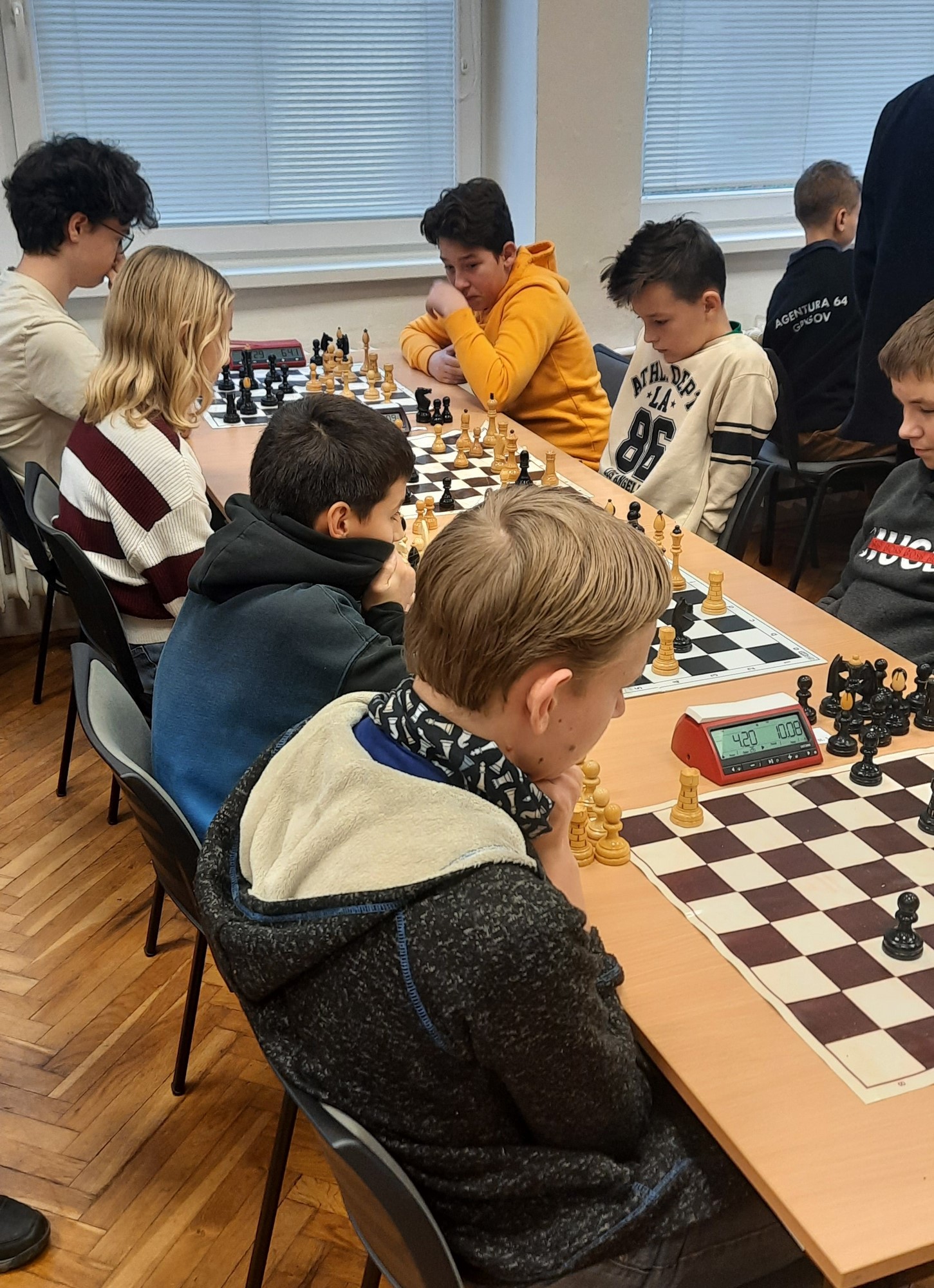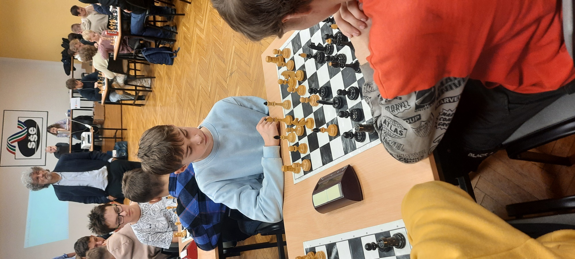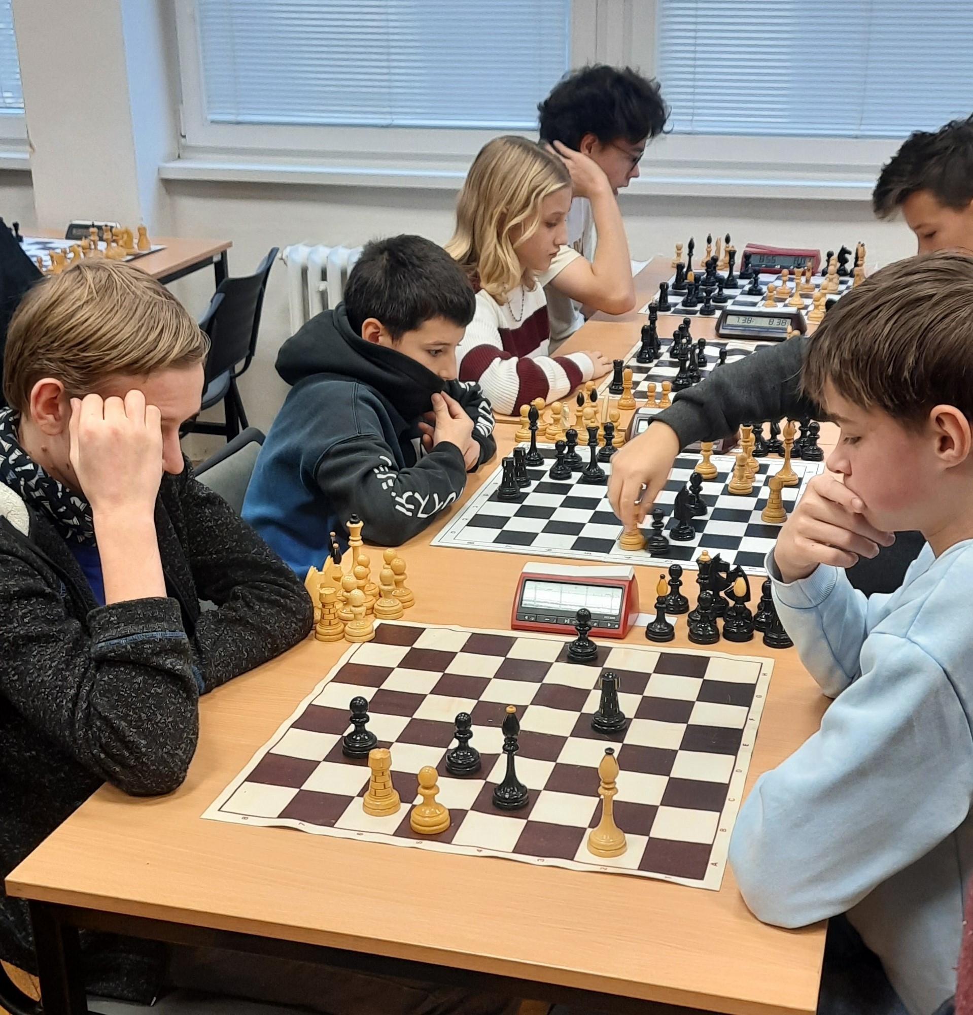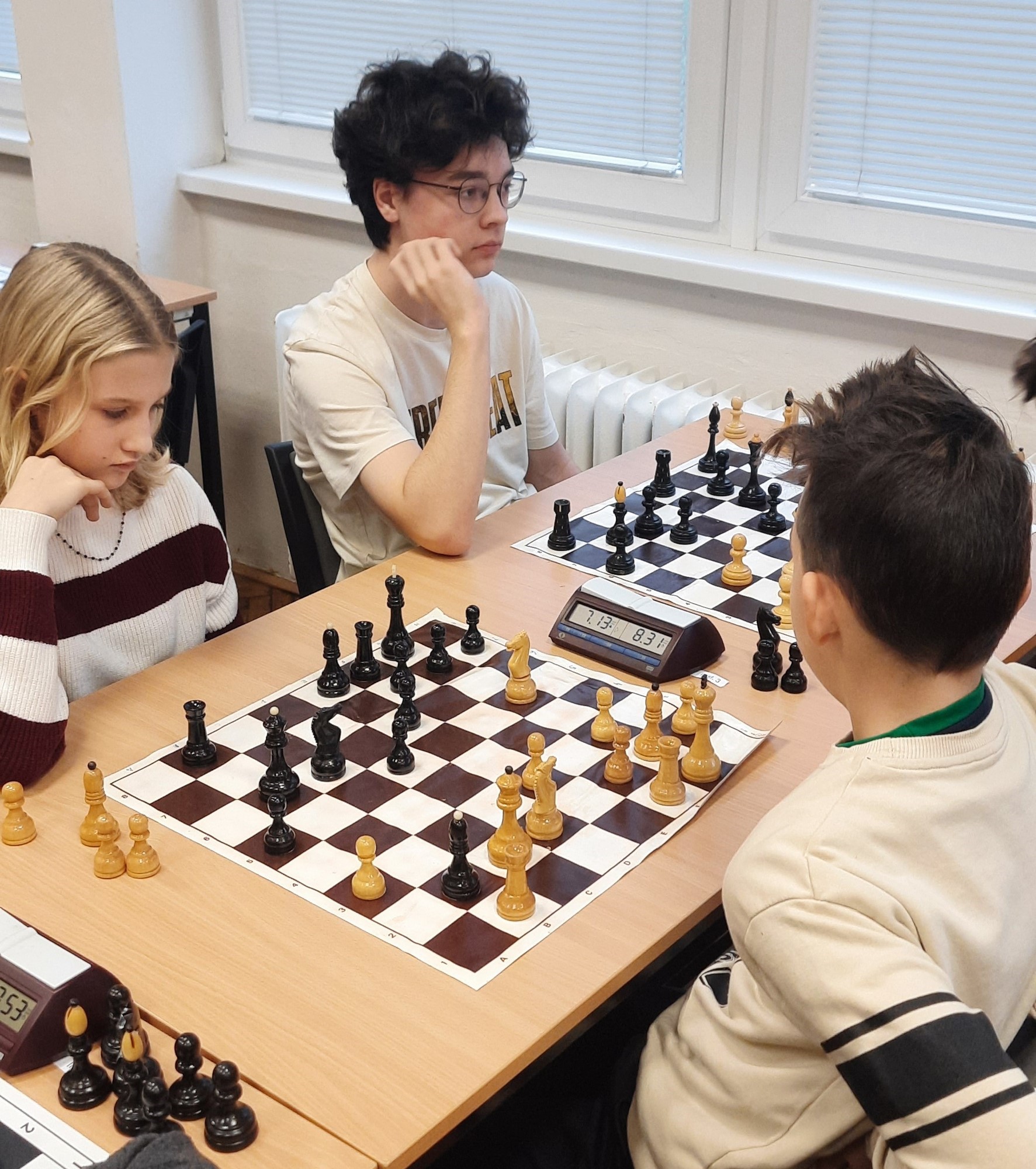 Naši žáci se účastnili v kategoriích pro nižší i pro vyšší gymnázium. Oba naše týmy vybojovaly v soutěži první místo a 4 nejlepší šachisté v každé kategorii postupují do krajského kola. Za nižší gymnázium postupují Kristián Poljak, David Široký, Adéla Bezroučková a Martin Jemelka.