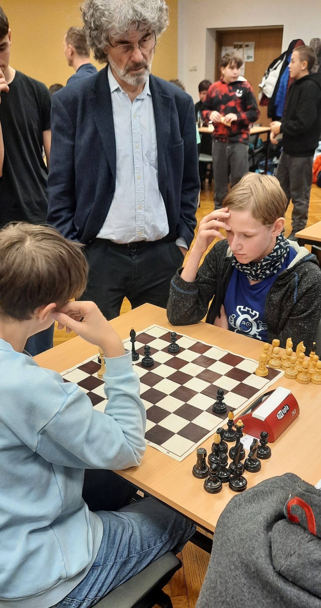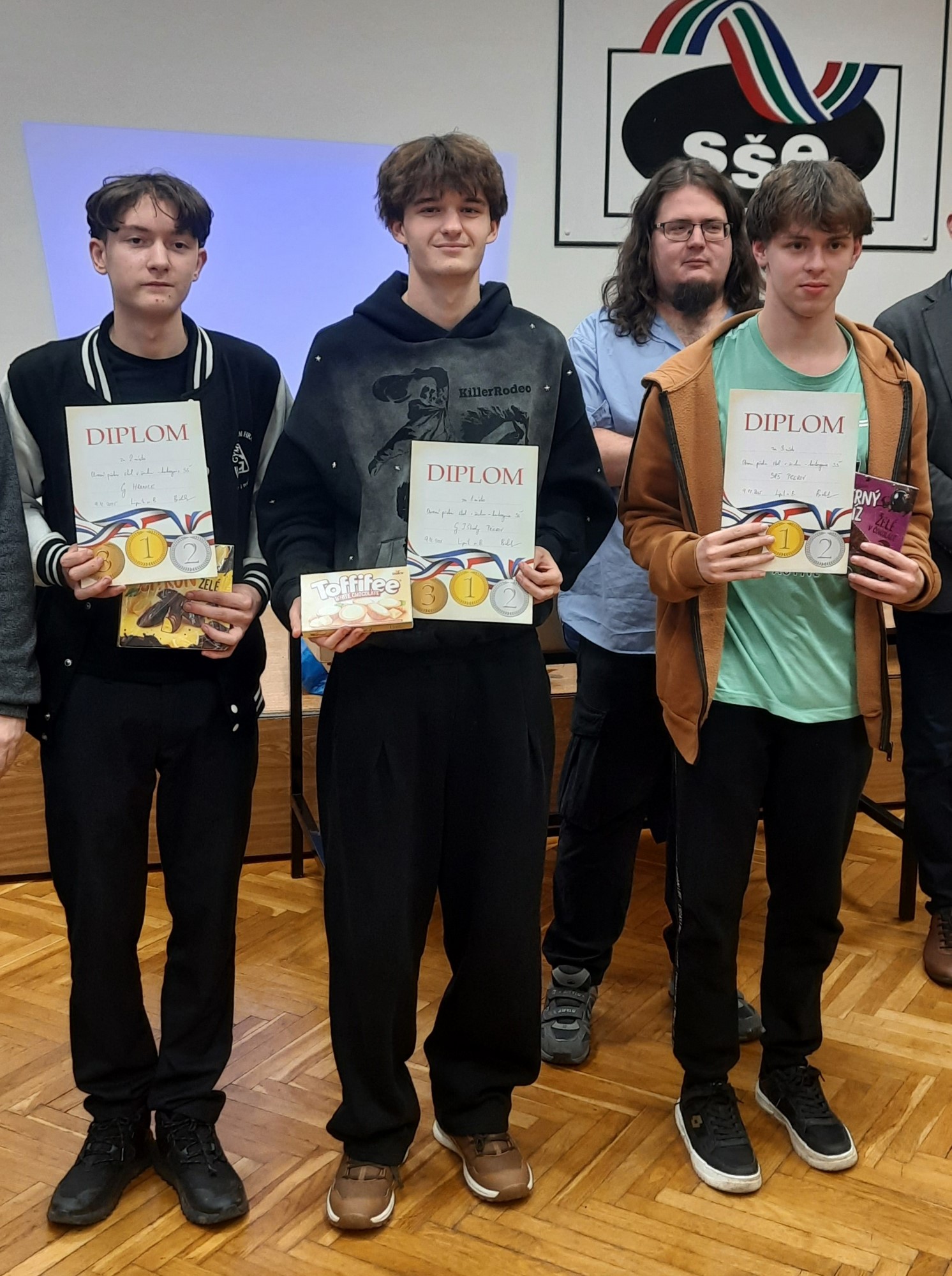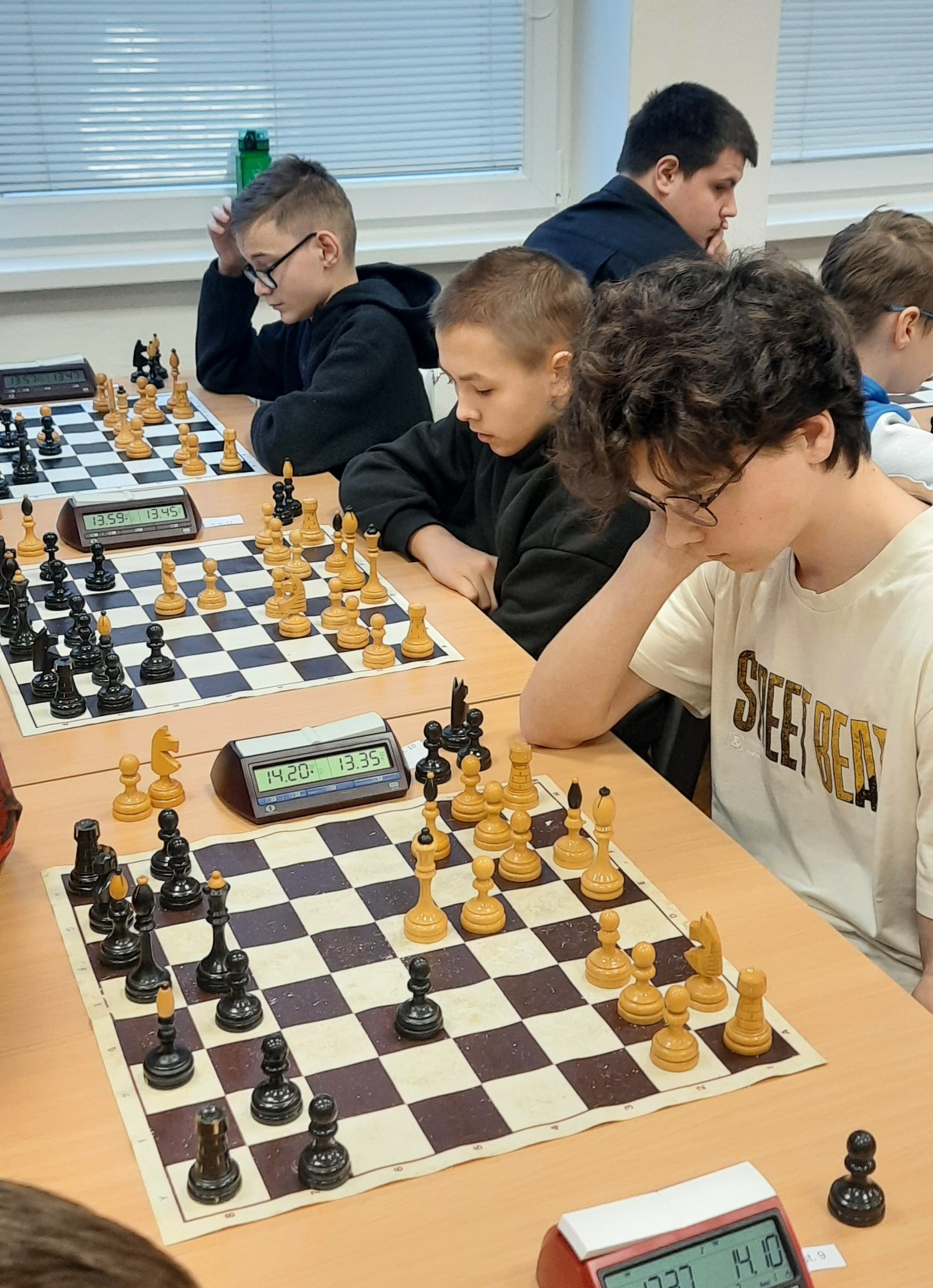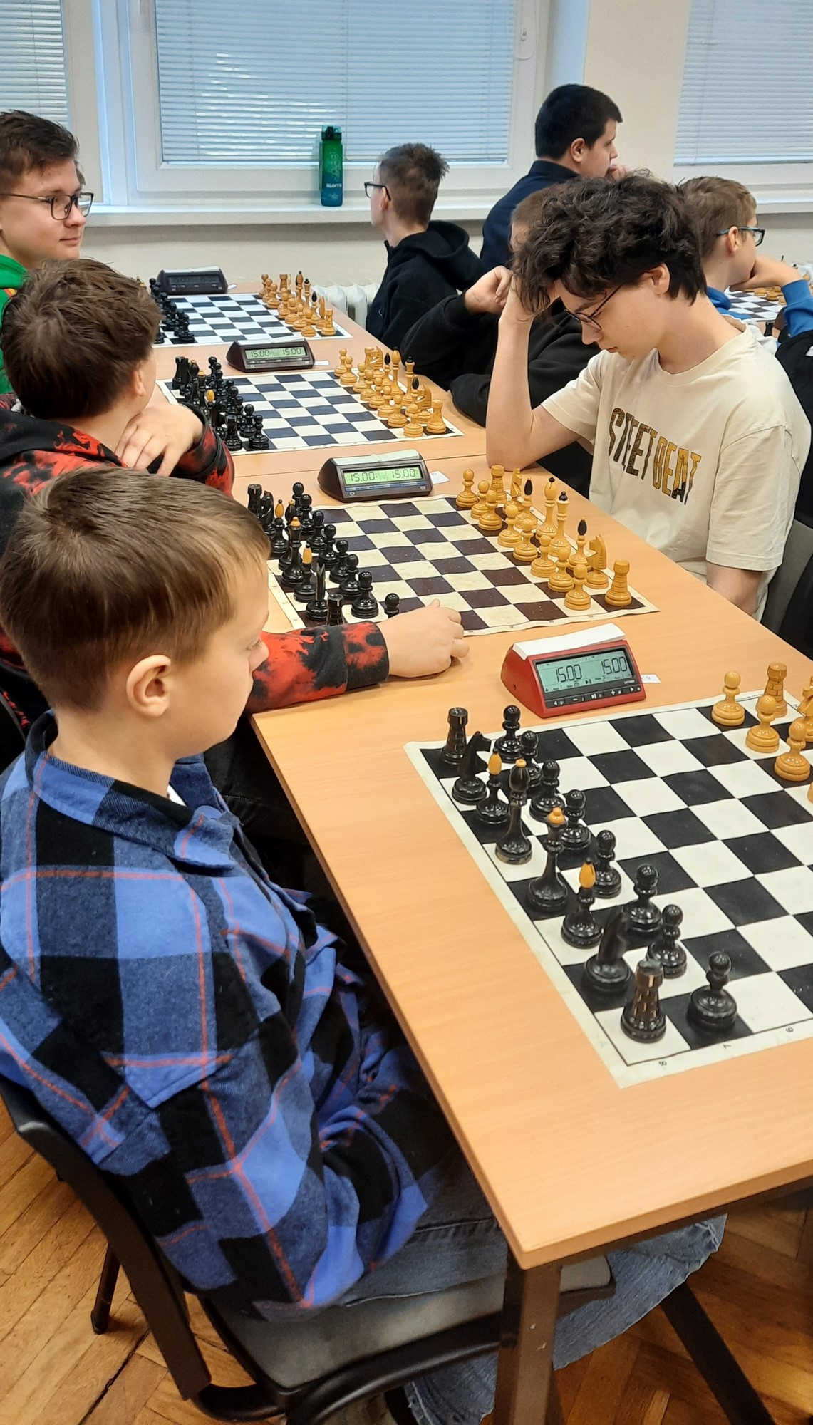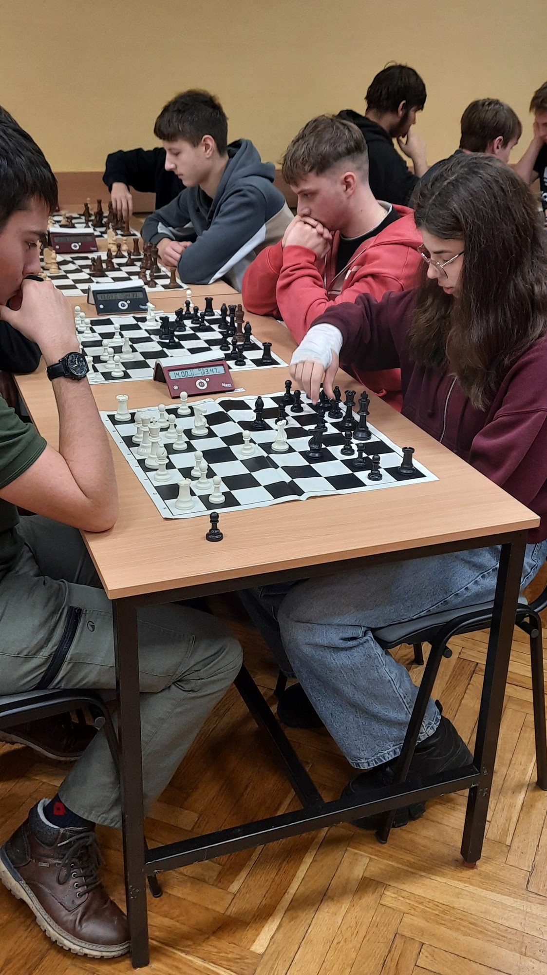 Naši žáci se účastnili v kategoriích pro nižší i pro vyšší gymnázium. Oba naše týmy vybojovaly v soutěži první místo a 4 nejlepší šachisté v každé kategorii postupují do krajského kola. Za nižší gymnázium postupují Kristián Poljak, David Široký, Adéla Bezroučková a Martin Jemelka.