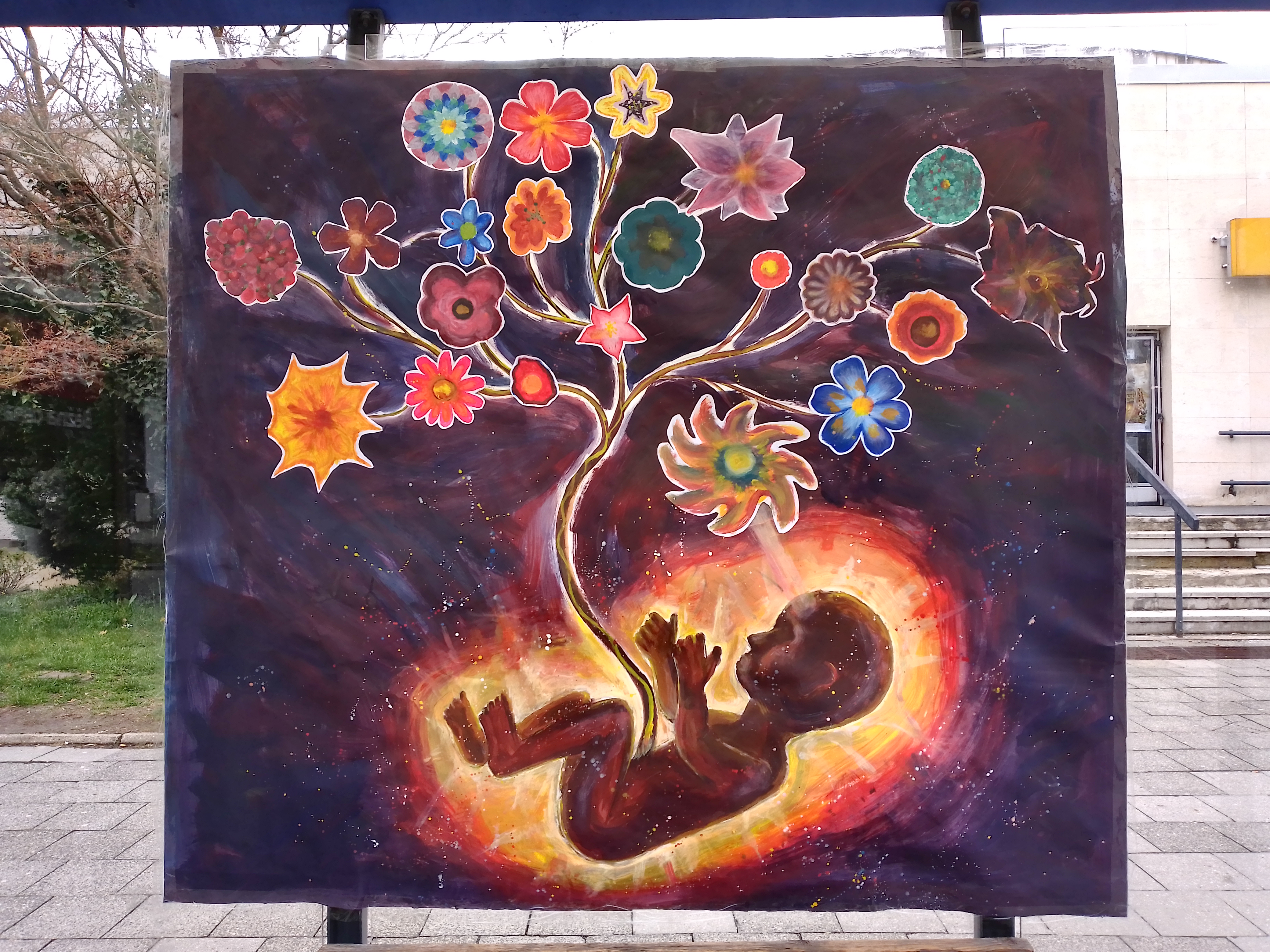 Studenti semináře Vizuální kultury (VK1) a kroužku Počítačové grafiky pod vedením Igora Fojtíka (speciální dík Ireně Kovářové a Zuzaně Zbořilové) zpracovali téma obrazem vyjadřujícím koloběh příběhů i přírody... zázrak zrození života a jeho jedinečnou křehkost ve vesmíru ...