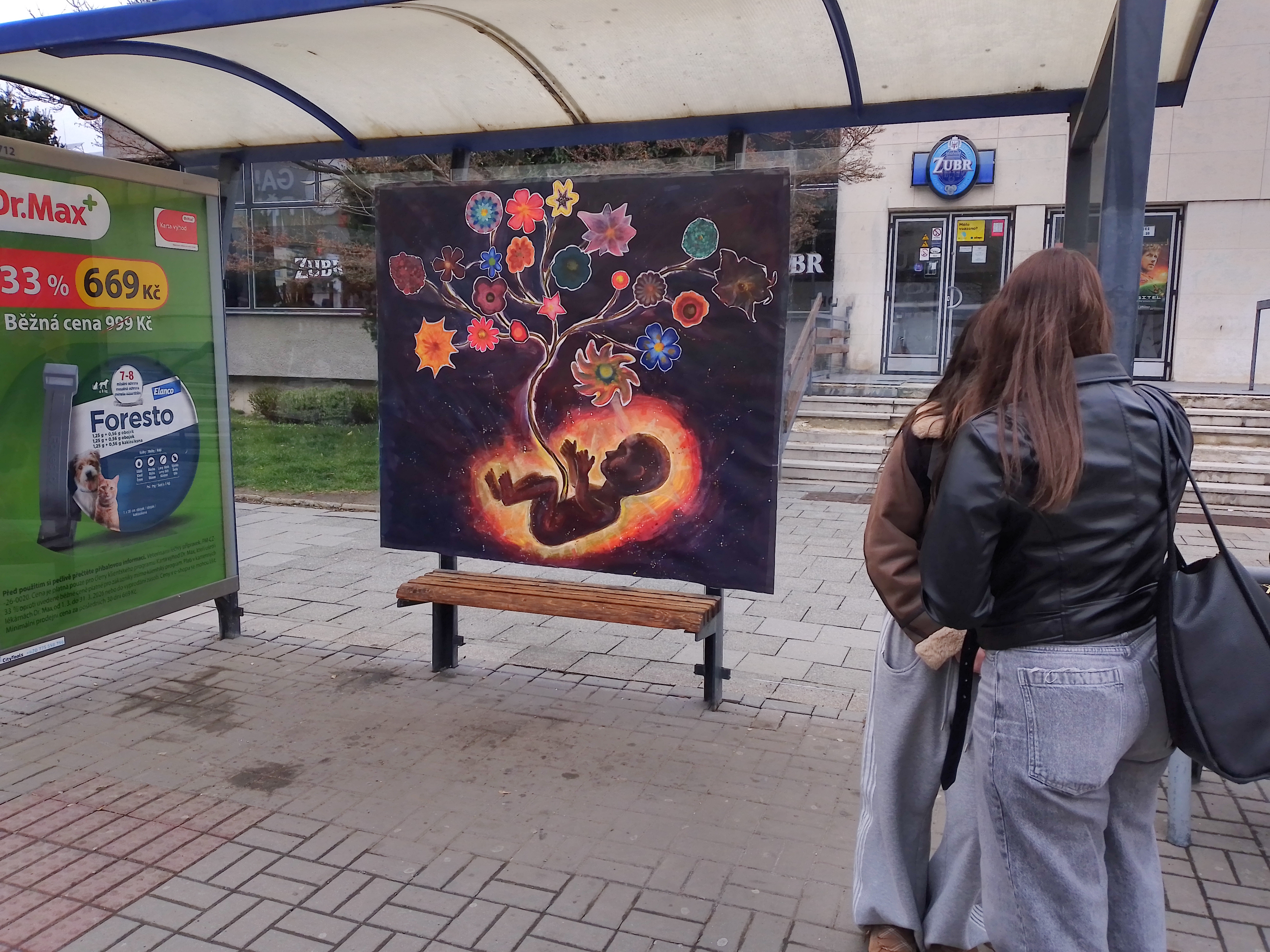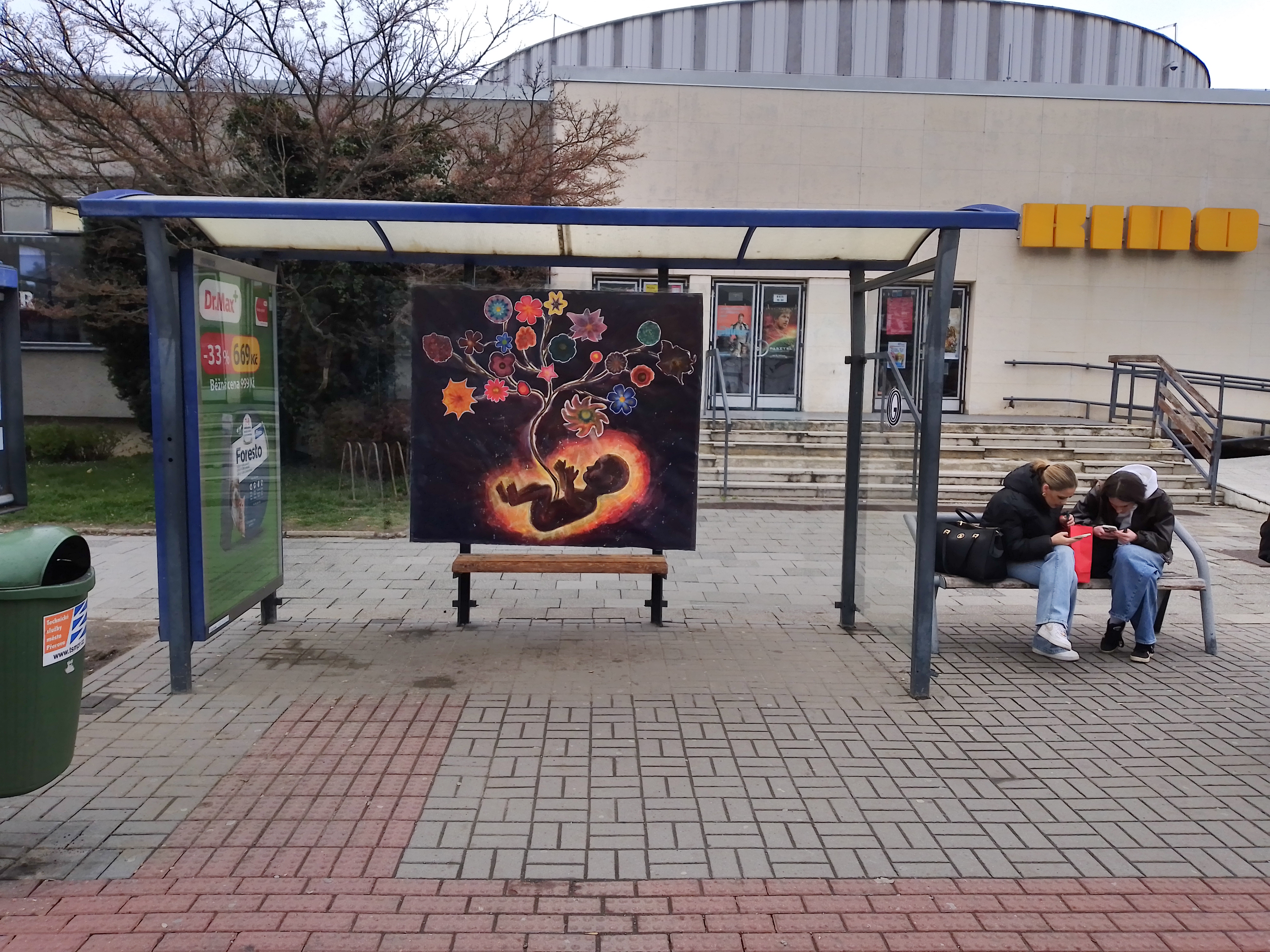 Zastávka je u kina Hvězda v Přerově, instalace bude k vidění do poloviny dubna 2026...