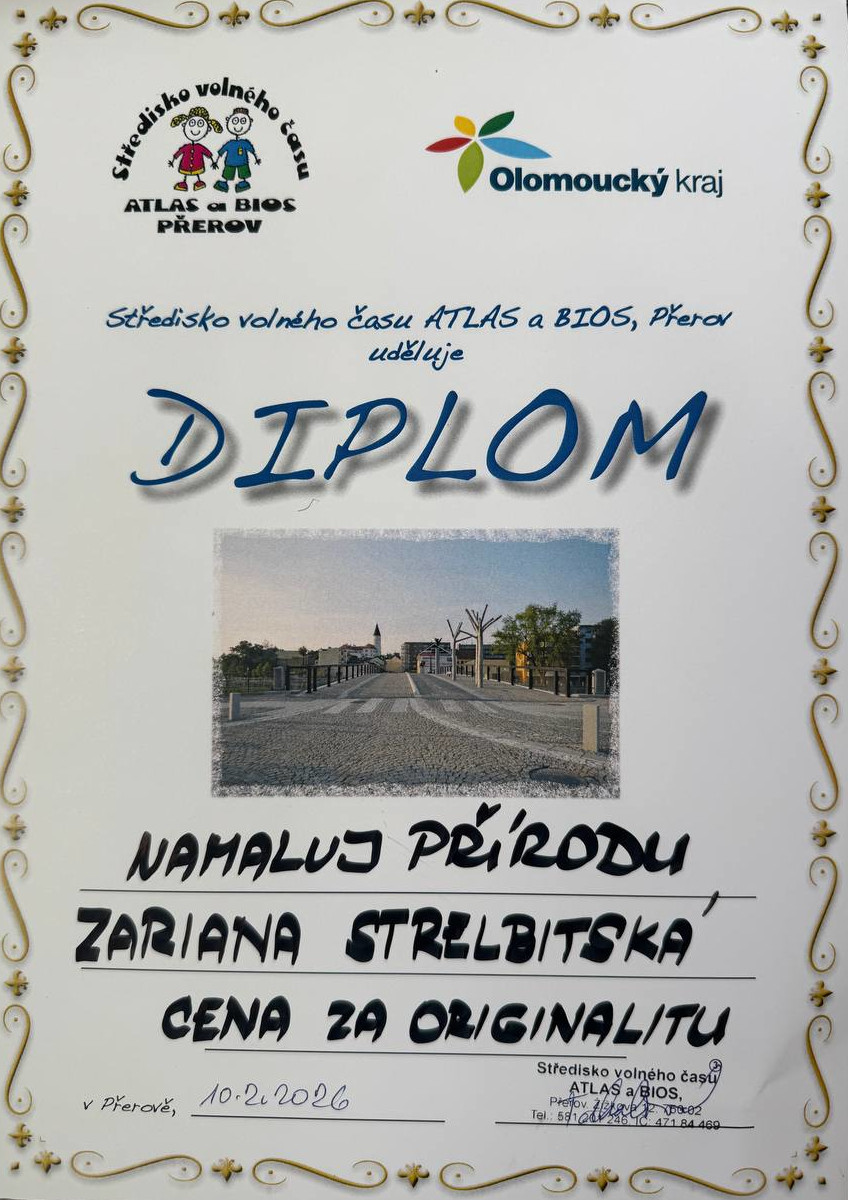 Naše žákyně Zariana Strelbitská dosáhla krásného úspěchu ve výtvarné soutěži „Namaluj přírodu“, kterou každoročně pořádá Středisko volného času ATLAS a BIOS v Přerově.